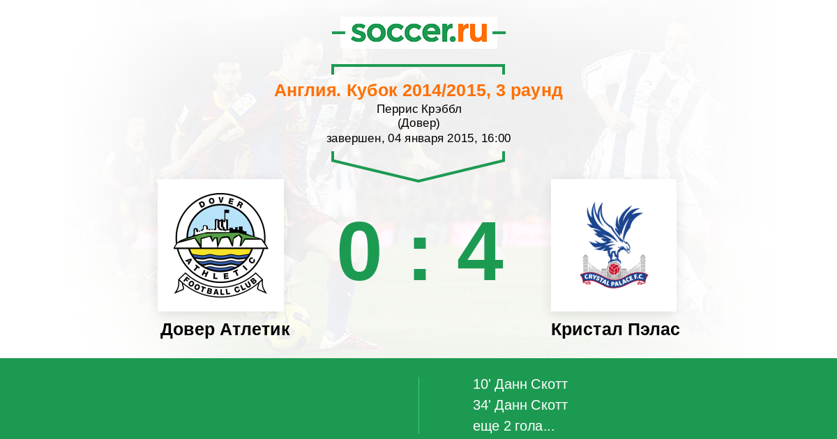 Протокол матча Довер Атлетик против Кристал Пэлас