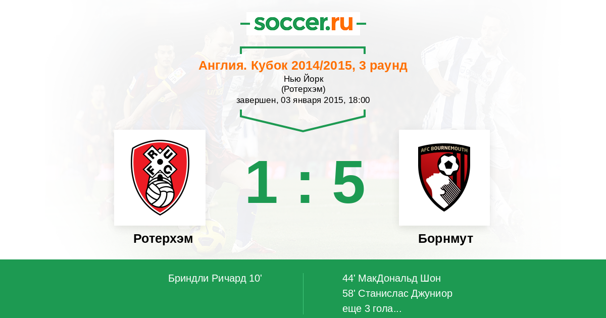 Протокол матча Ротерхэм против Борнмут