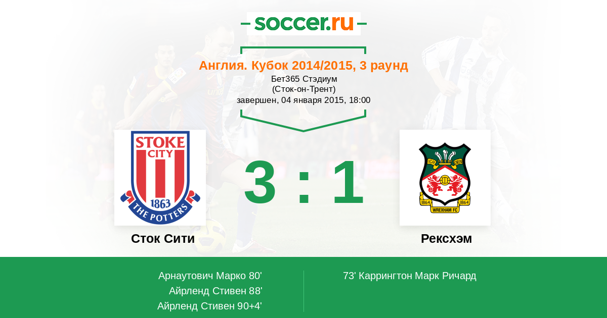 Протокол матча Сток Сити против Рексхэм