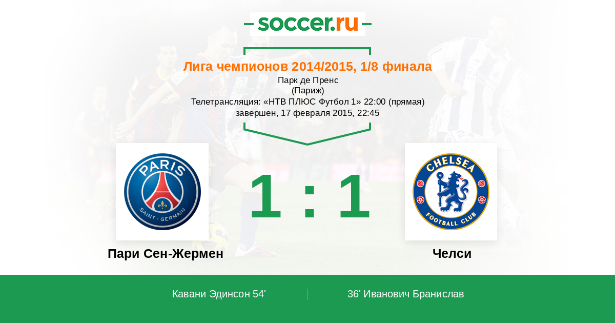 Протокол матча Пари Сен-Жермен против Челси