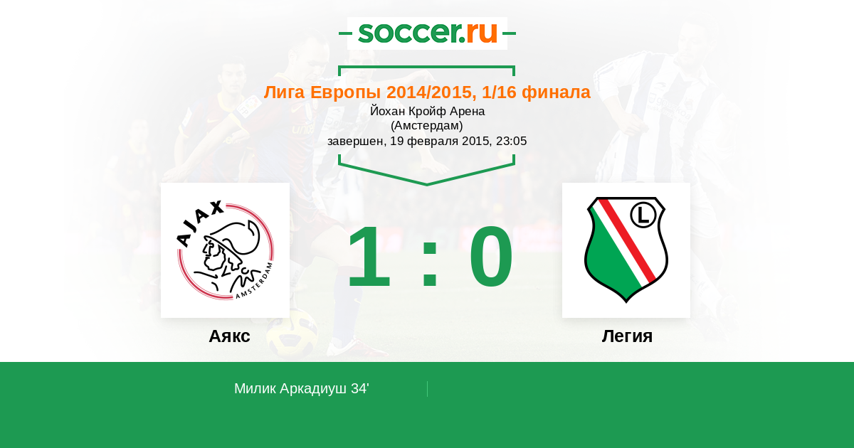 34' (1:0) Милик Аркадиуш (19) (Кишна Рикардо (11))