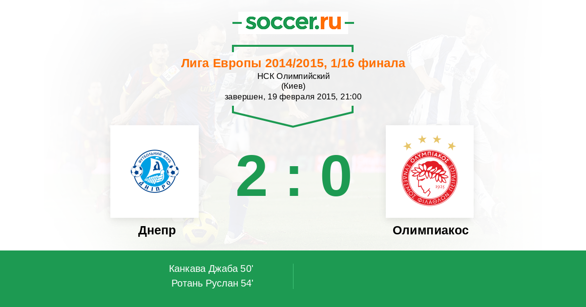 Протокол матча Днепр против Олимпиакос