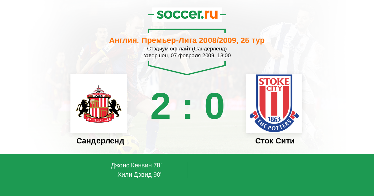 Протокол матча Сандерленд против Сток Сити