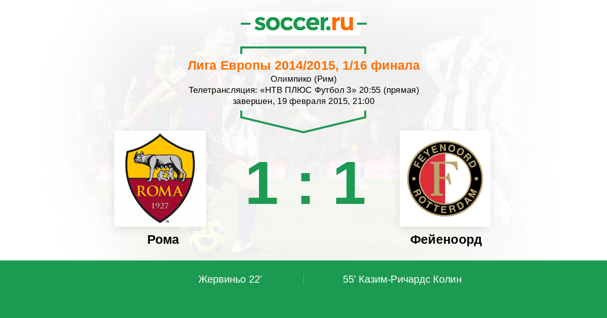 Протокол матча Рома против Фейеноорд