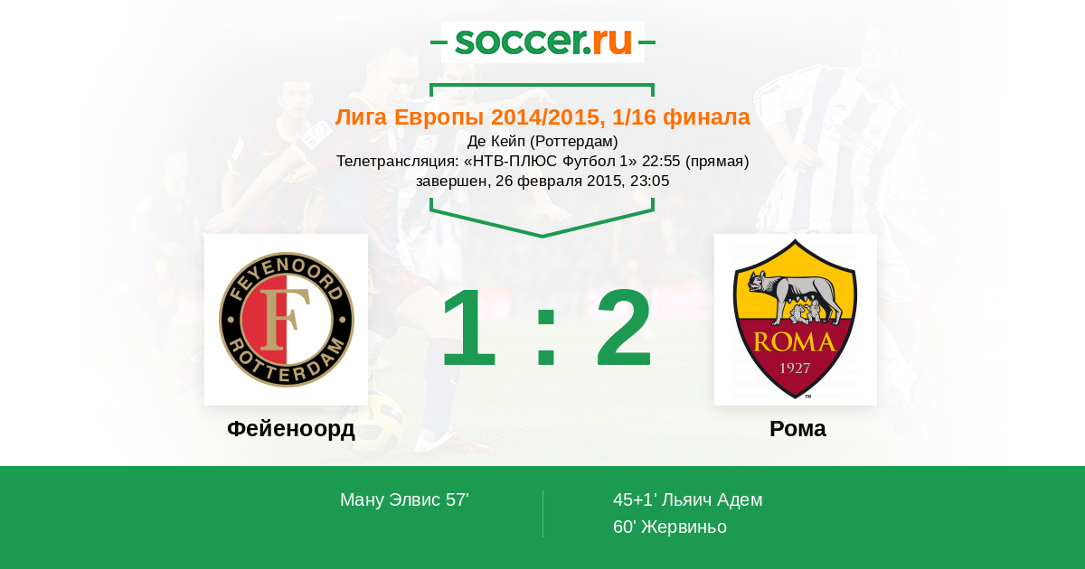 Протокол матча Фейеноорд против Рома