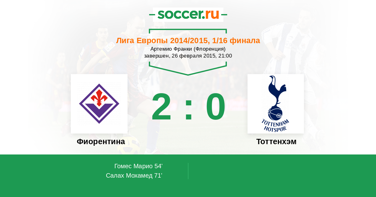 Протокол матча Фиорентина против Тоттенхэм