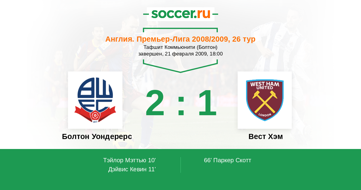Протокол матча Болтон Уондерерс против Вест Хэм