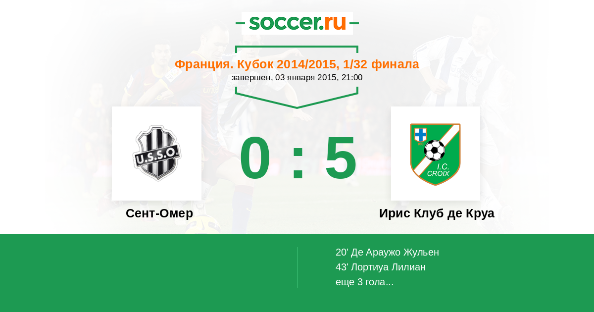 Протокол матча Сент-Омер против Ирис Клуб де Круа