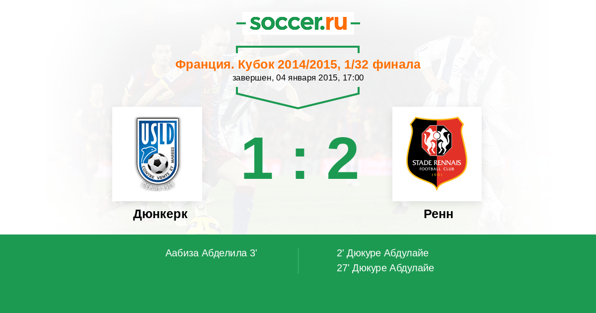 Протокол матча Дюнкерк против Ренн