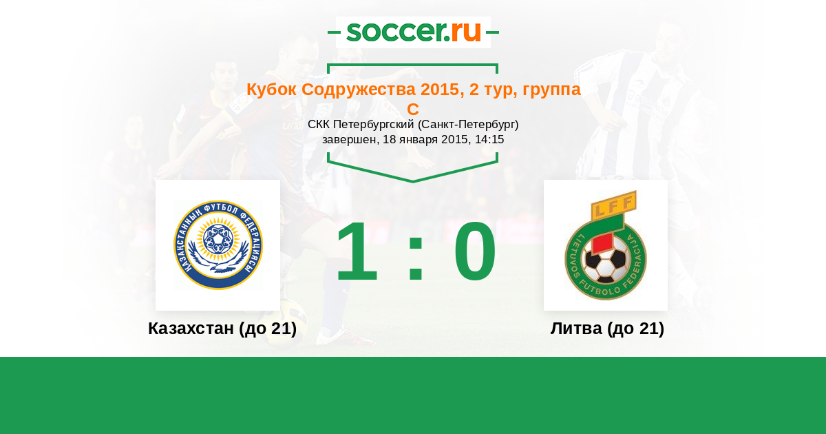 Кубок Содружества 27.01.2012 Литва (до 21) Логотип Литва (до 21) 0:0 (5:3) Логотип Казахстан (до 21) Казахстан (до 21)
