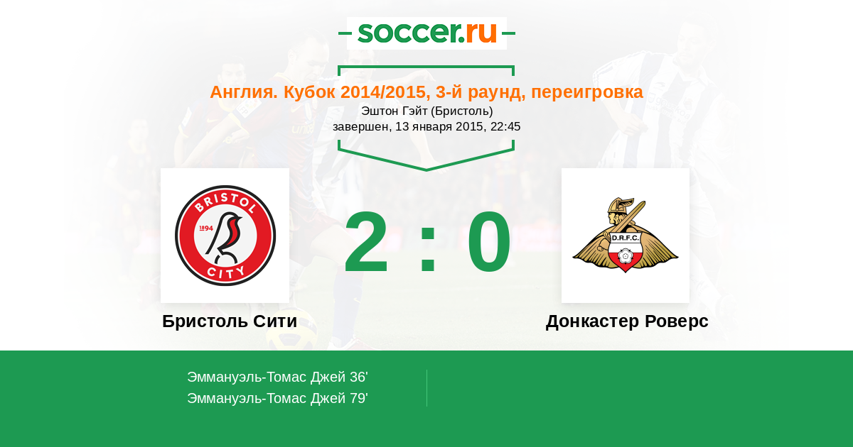 Протокол матча Бристоль Сити против Донкастер Роверс