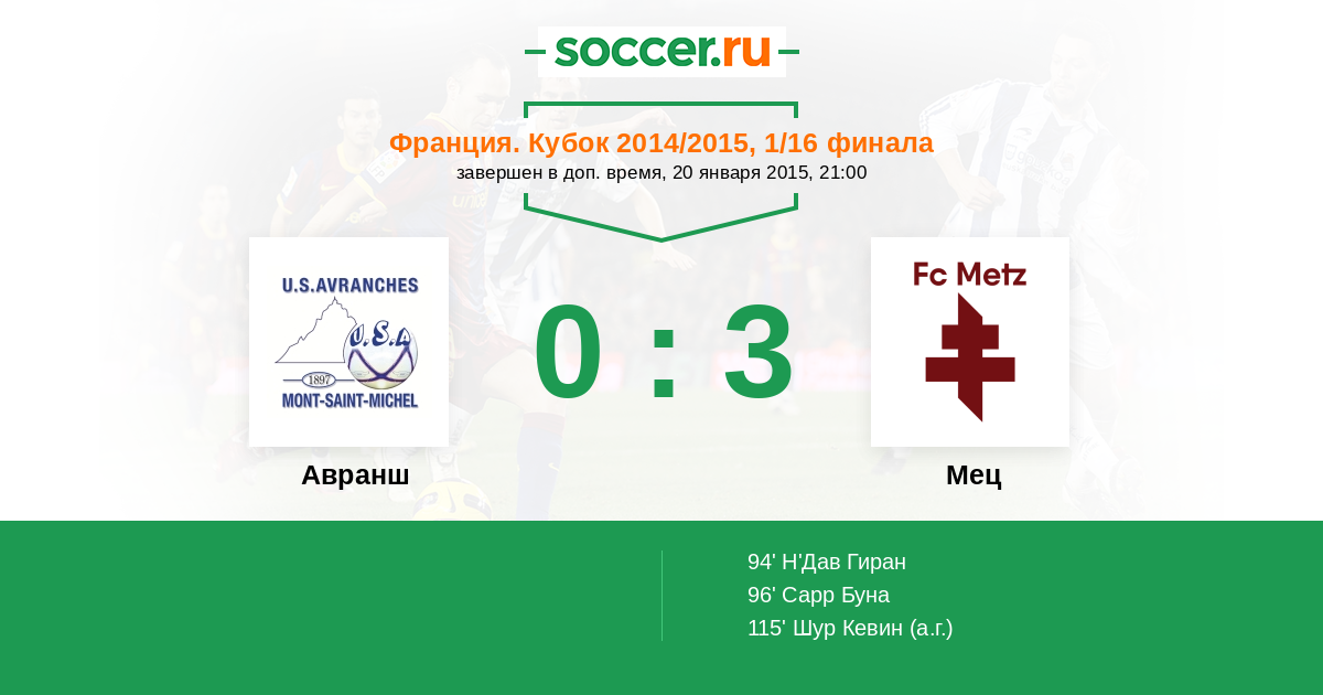 Протокол матча Авранш против Мец
