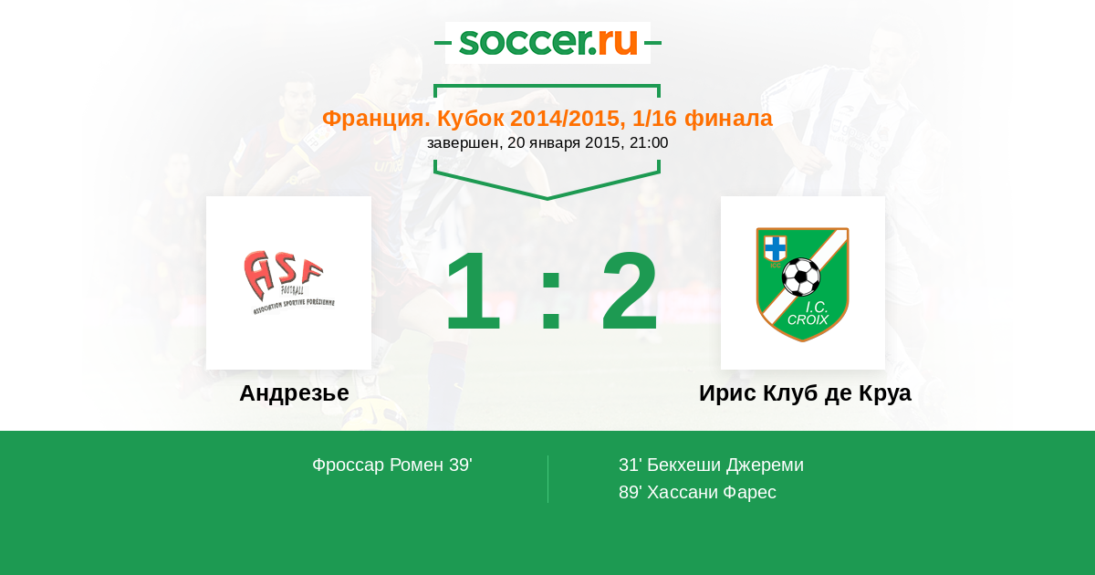 Протокол матча Андрезье против Ирис Клуб де Круа