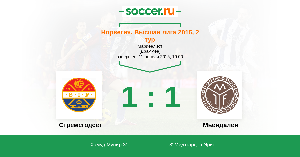 Протокол матча Стремсгодсет против Мьёндален