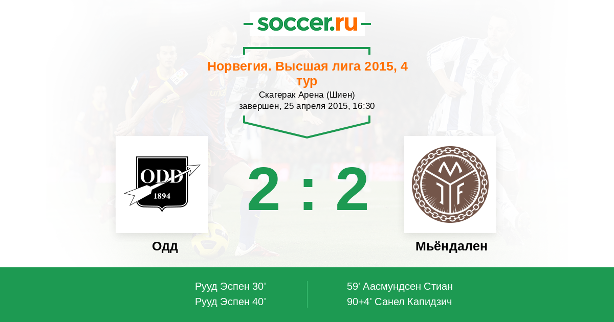 59' (2:1) Аасмундсен Стиан (15) (Гаусет Кристиан (11))