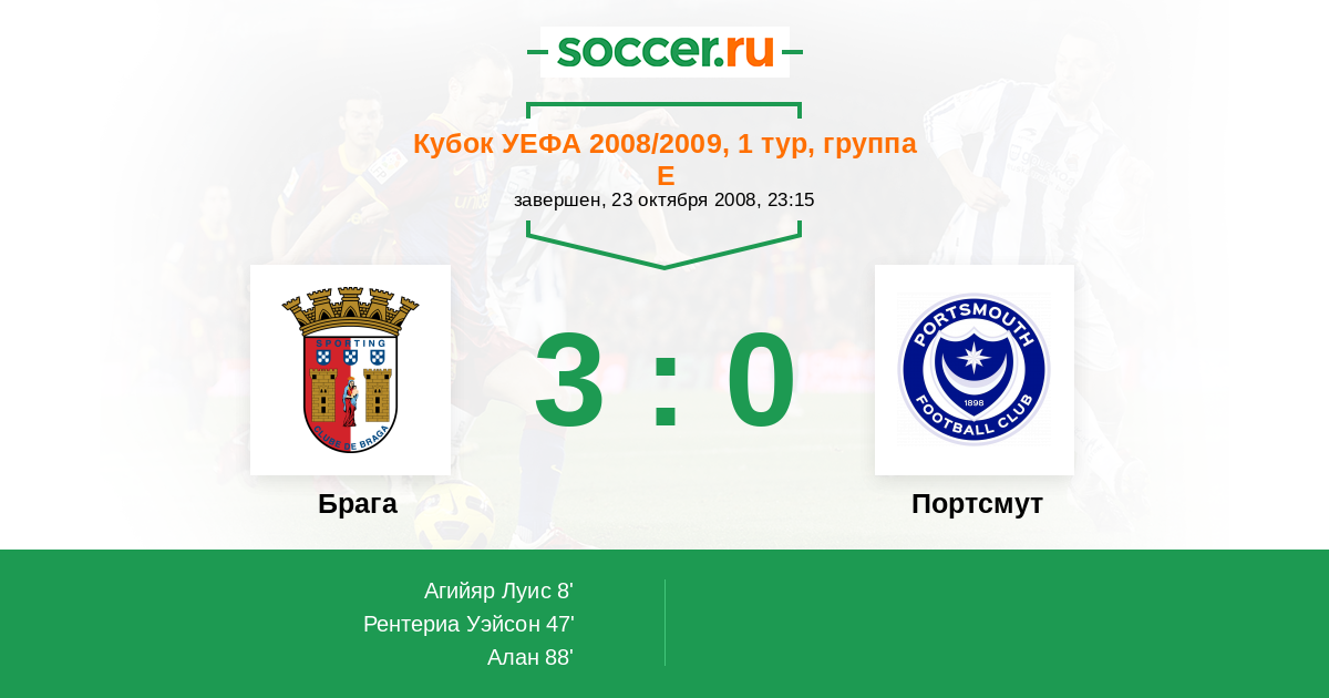 Протокол матча Брага против Портсмут