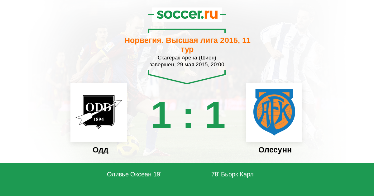 Протокол матча Одд против Олесунн
