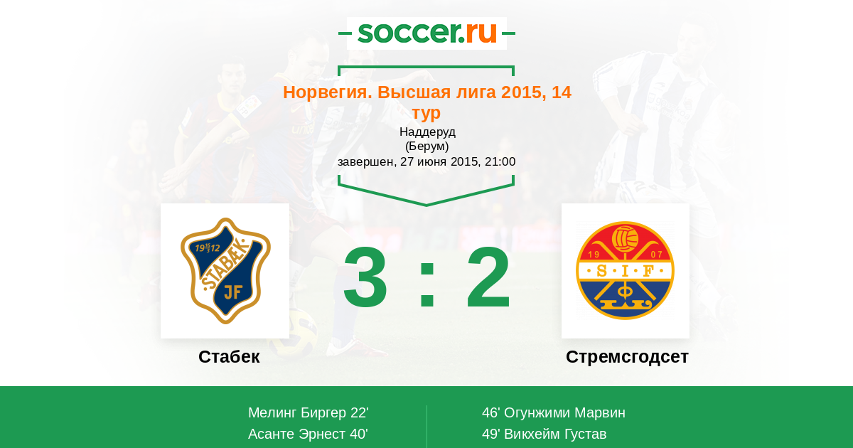 Протокол матча Стабек против Стремсгодсет