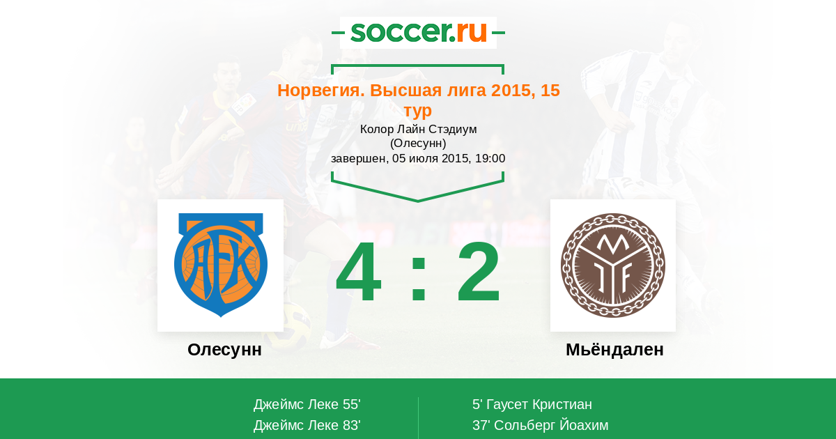 37' (0:2) Сольберг Йоахим (3) (Мидтгарден Эрик (10))