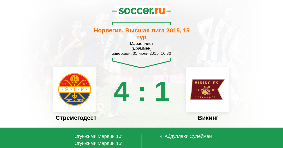 Протокол матча Стремсгодсет против Викинг