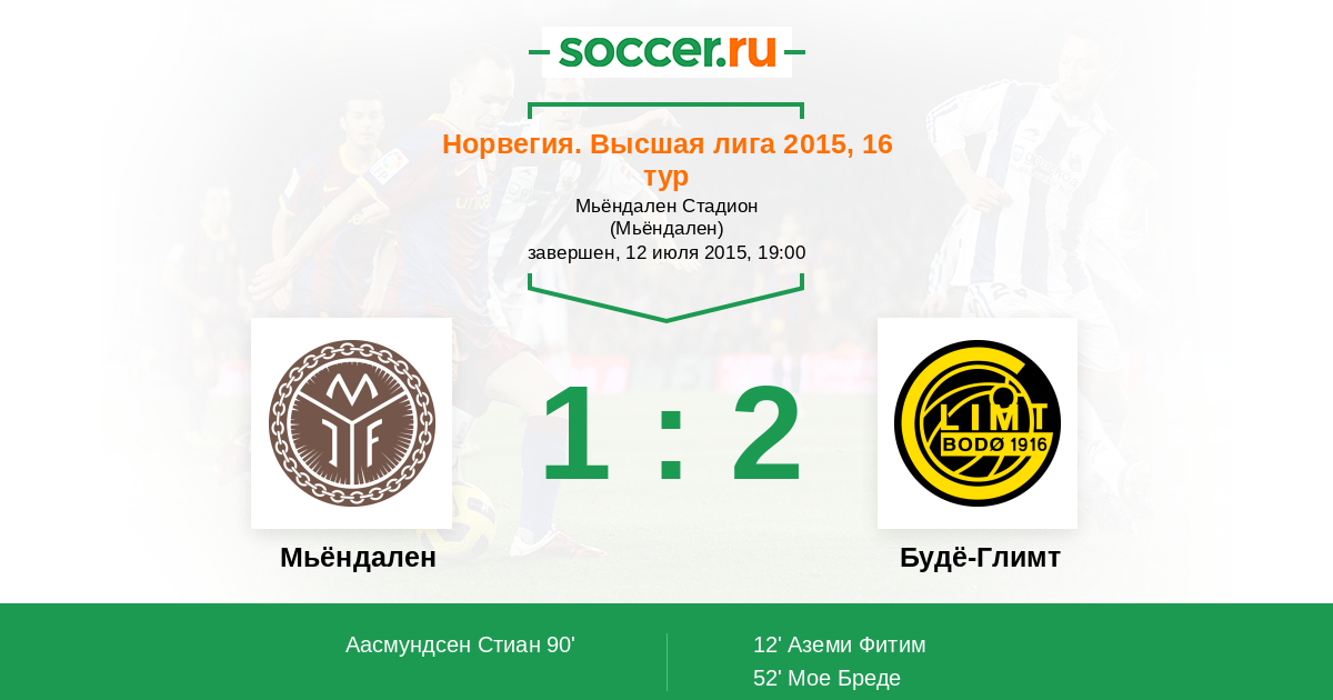 Протокол матча Мьёндален против Будё-Глимт