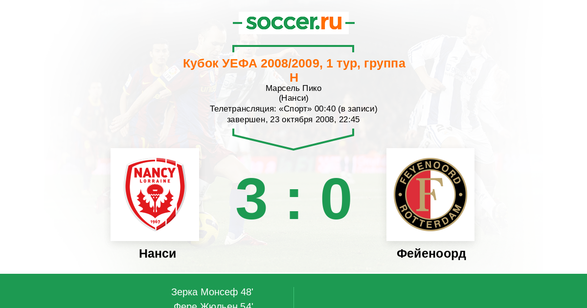 Протокол матча Нанси против Фейеноорд