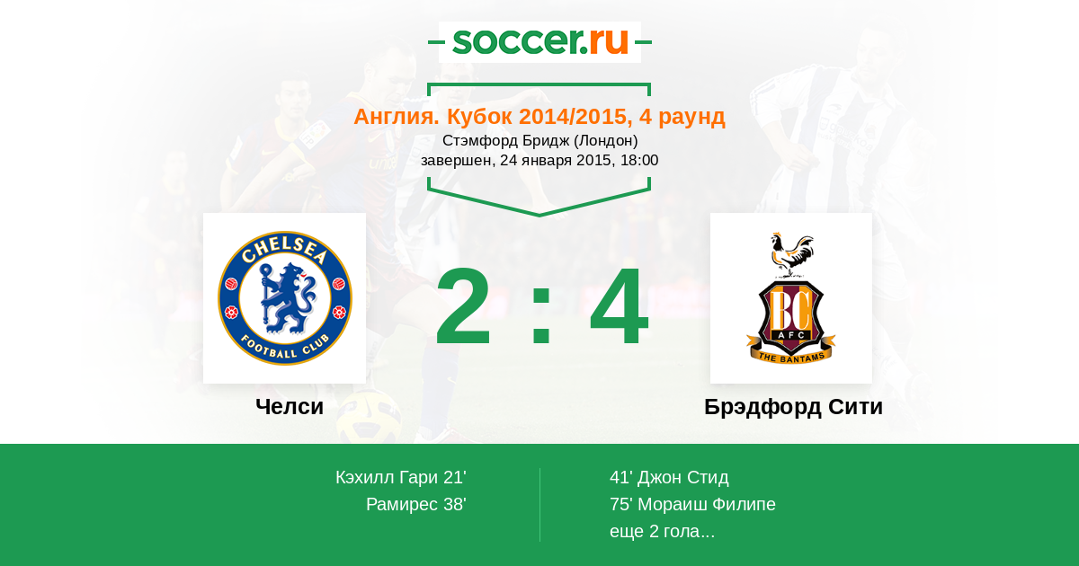 Протокол матча Челси против Брэдфорд Сити