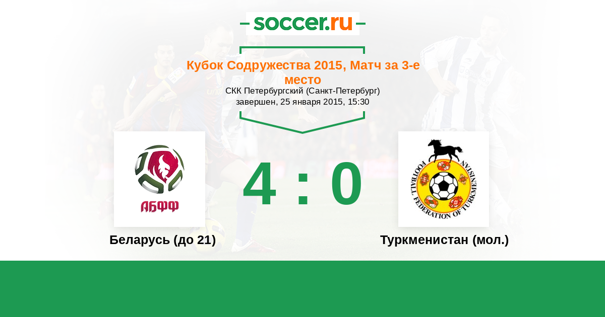 Кубок Содружества 25.01.2015 Беларусь (до 21)   4:0   Туркменистан (мол.)