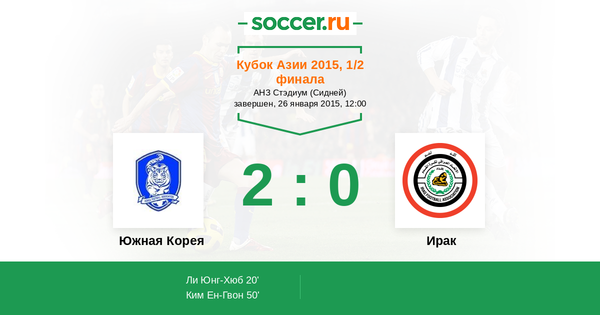 Протокол матча Южная Корея против Ирак