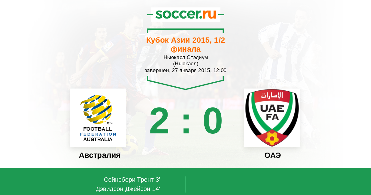 3' (1:0) Сейнсбери Трент (20) (Луонго Массимо (21))