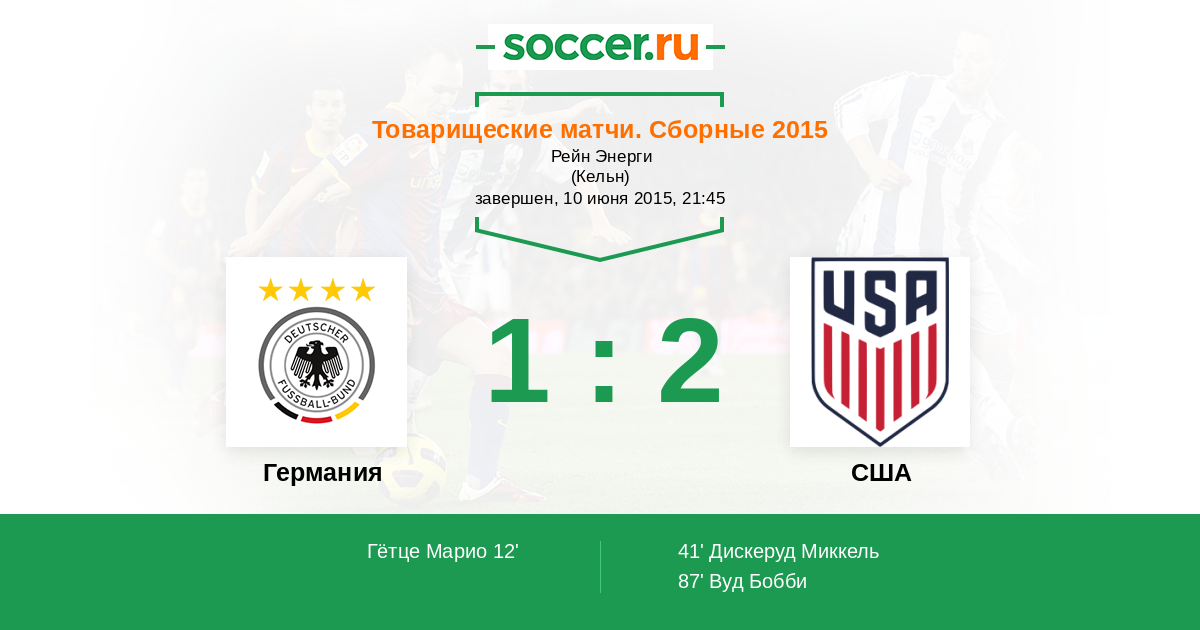 Меня вот терзают смутные сомнения, а не был ли матч договорняком (так сказать, жестом гостеприимства) на фоне скандала с ФИФА, который только и набирает обороты? При всем, я считаю, что амеры играют на уровне немцев, не ниже, но вот тут такое совпадение с этим скандалом, что в голову лезут нехорошие подозрения.