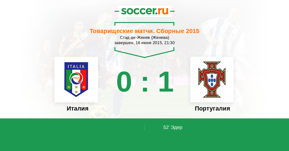 52' (0:1) Эдер (9) (Куарежма Рикарду (20))