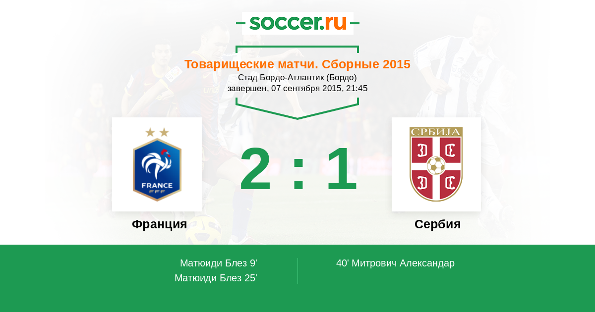 40' (2:1) Митрович Александар (9) (Маркович Лазар (21))