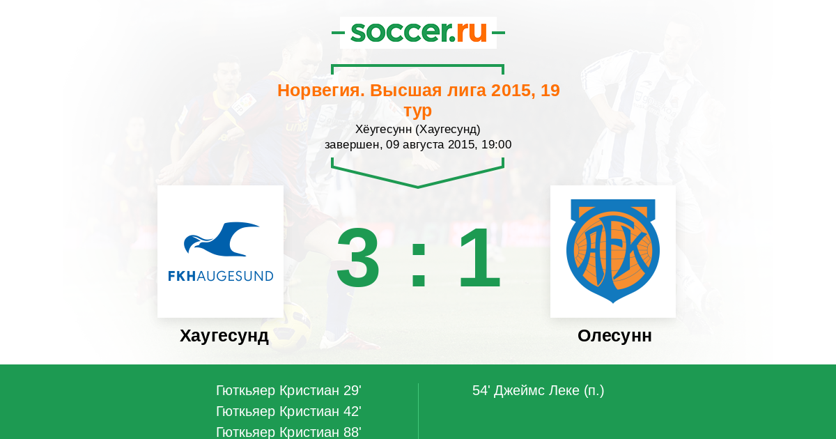 29' (1:0) Гюткьяер Кристиан (7) (Хаукас Михаэль (8))