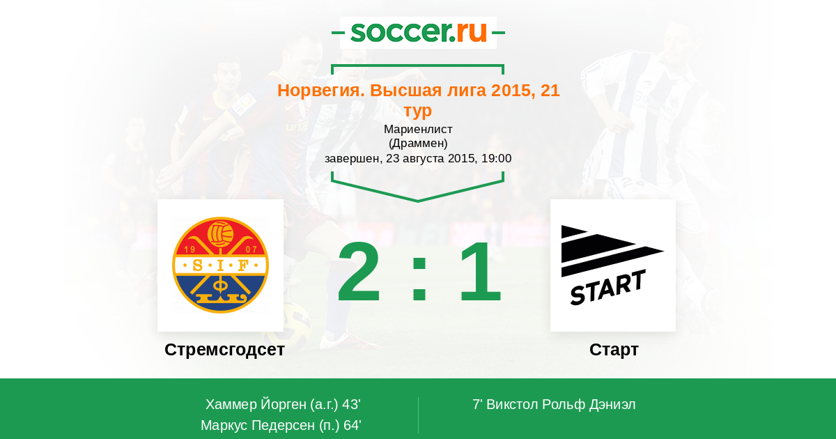 7' (0:1) Викстол Рольф Дэниэл (28) (Хаммер Йорген (33))