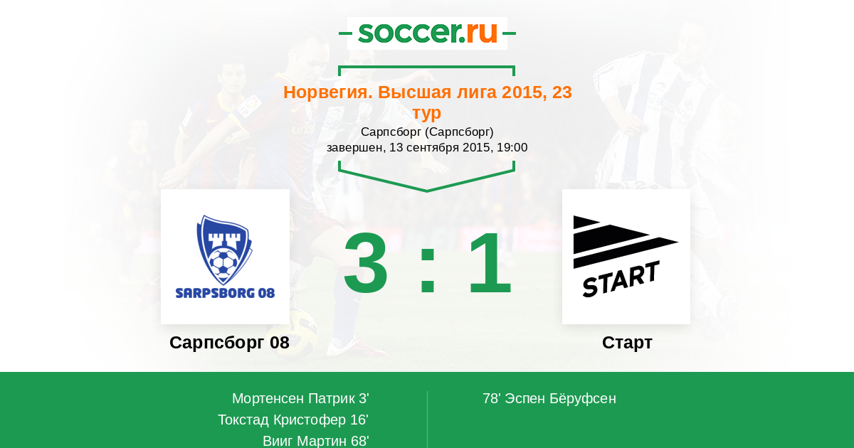 Протокол матча Сарпсборг 08 против Старт