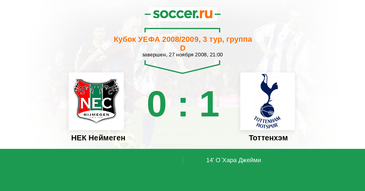 Протокол матча НЕК Неймеген против Тоттенхэм