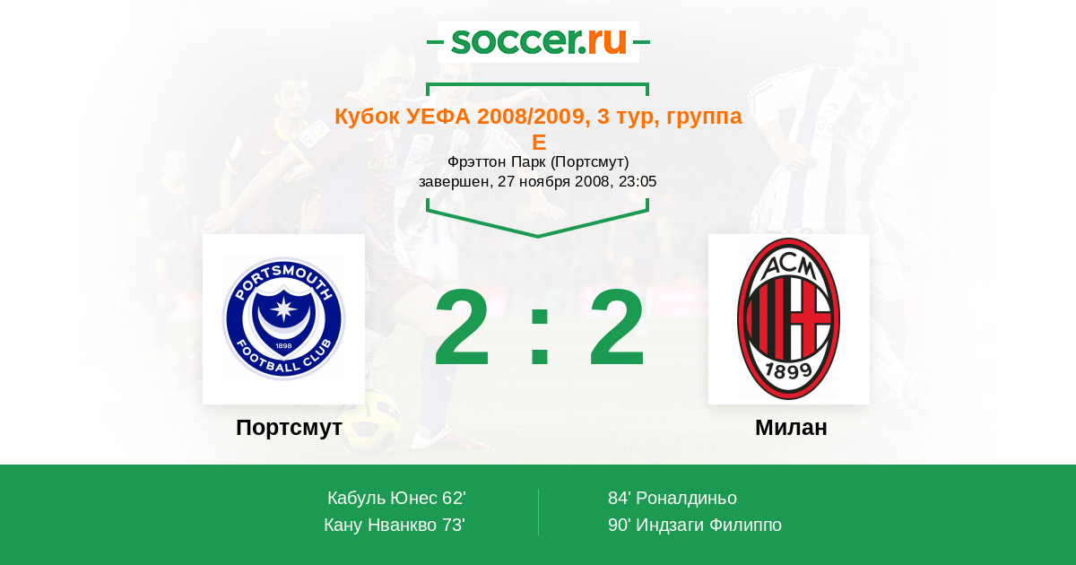 Протокол матча Портсмут против Милан