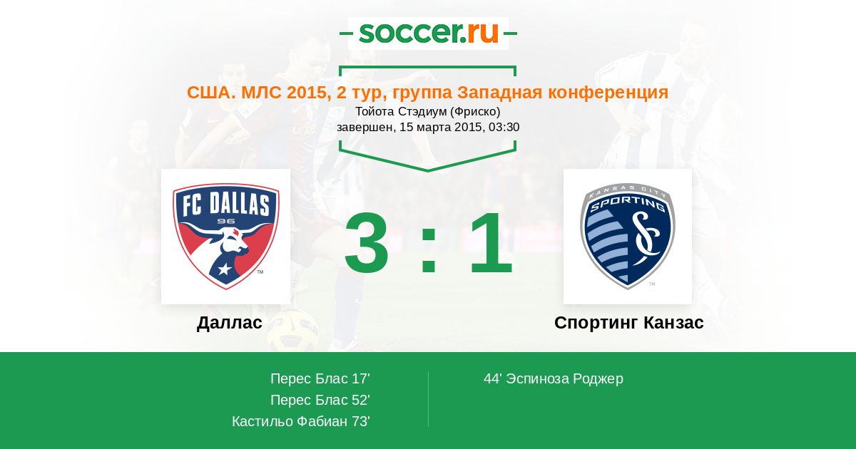 Протокол матча Даллас против Спортинг Канзас