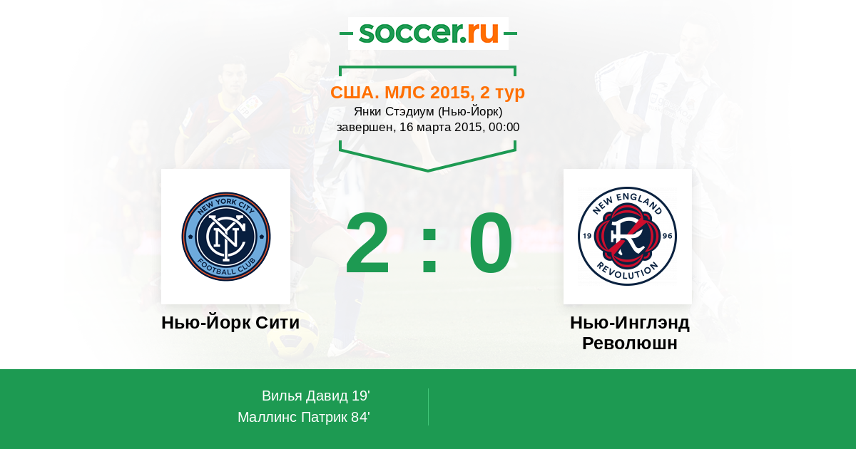 Протокол матча Нью-Йорк Сити против Нью-Инглэнд Революшн