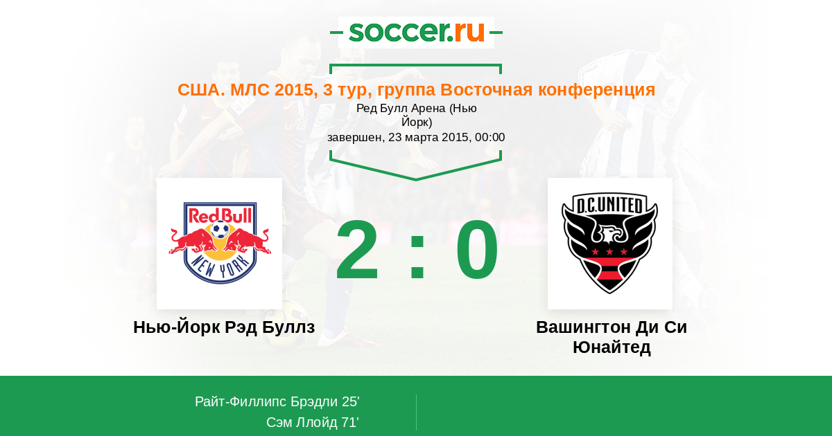 Протокол матча Нью-Йорк Рэд Буллз против Вашингтон Ди Си Юнайтед