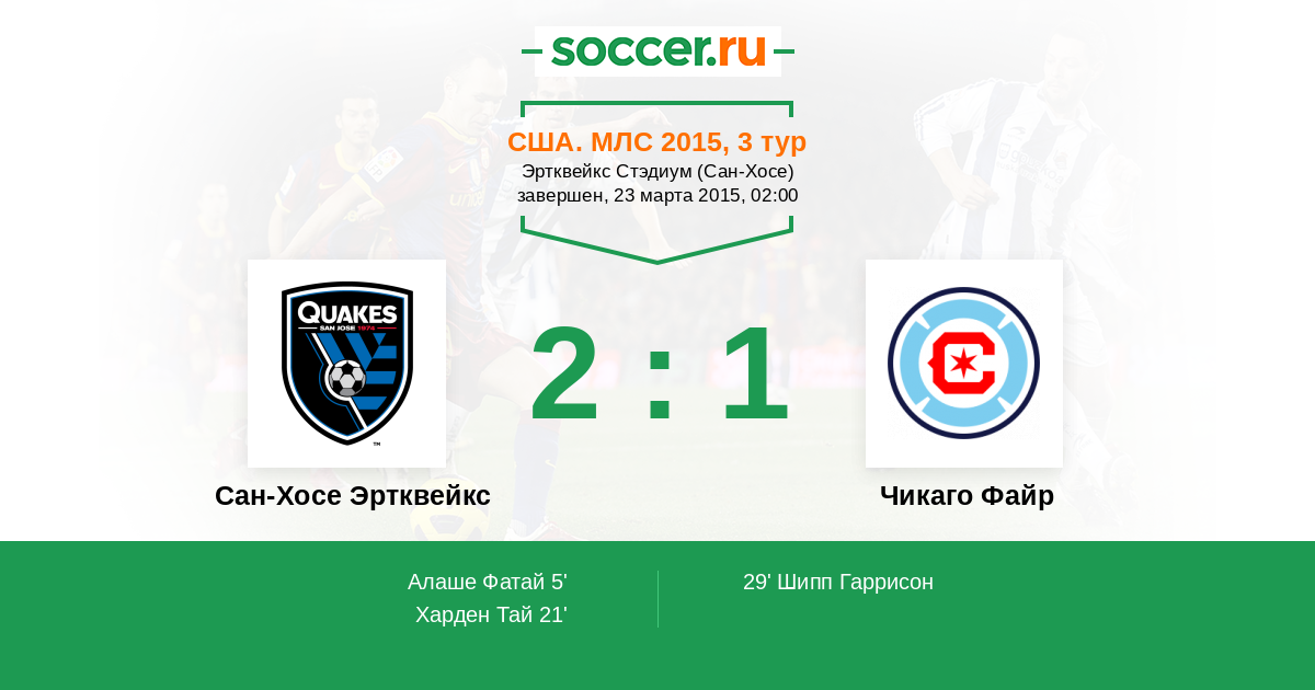 Протокол матча Сан-Хосе Эртквейкс против Чикаго Файр