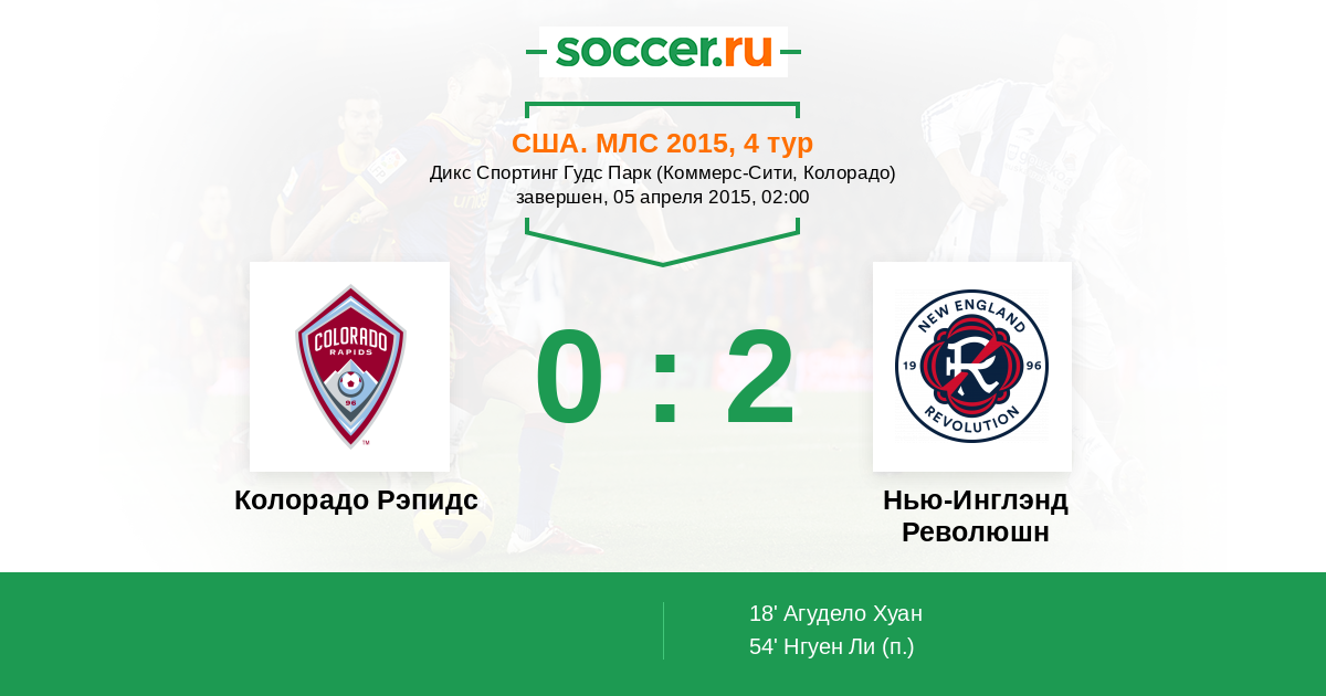 Протокол матча Колорадо Рэпидс против Нью-Инглэнд Революшн
