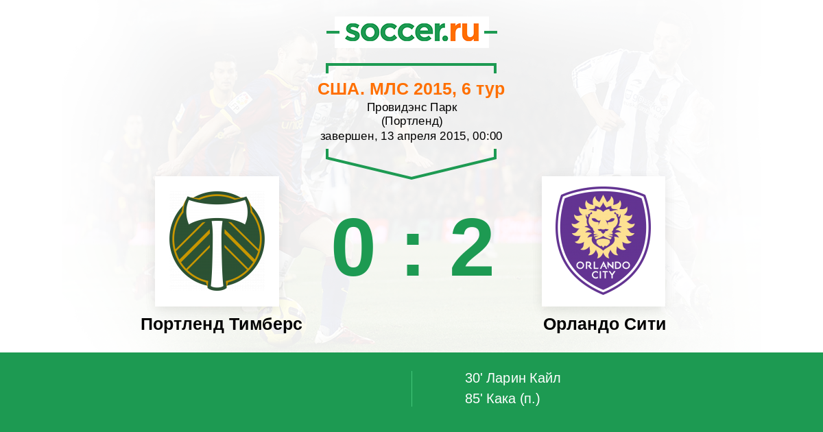 Протокол матча Портленд Тимберс против Орландо Сити