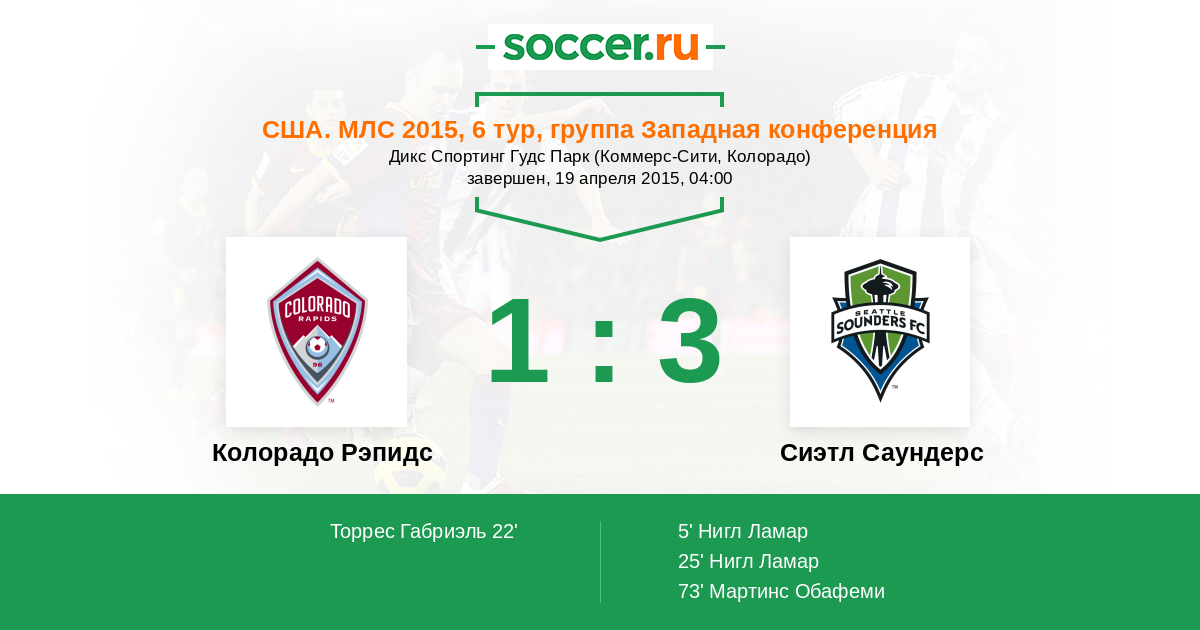 Протокол матча Колорадо Рэпидс против Сиэтл Саундерс