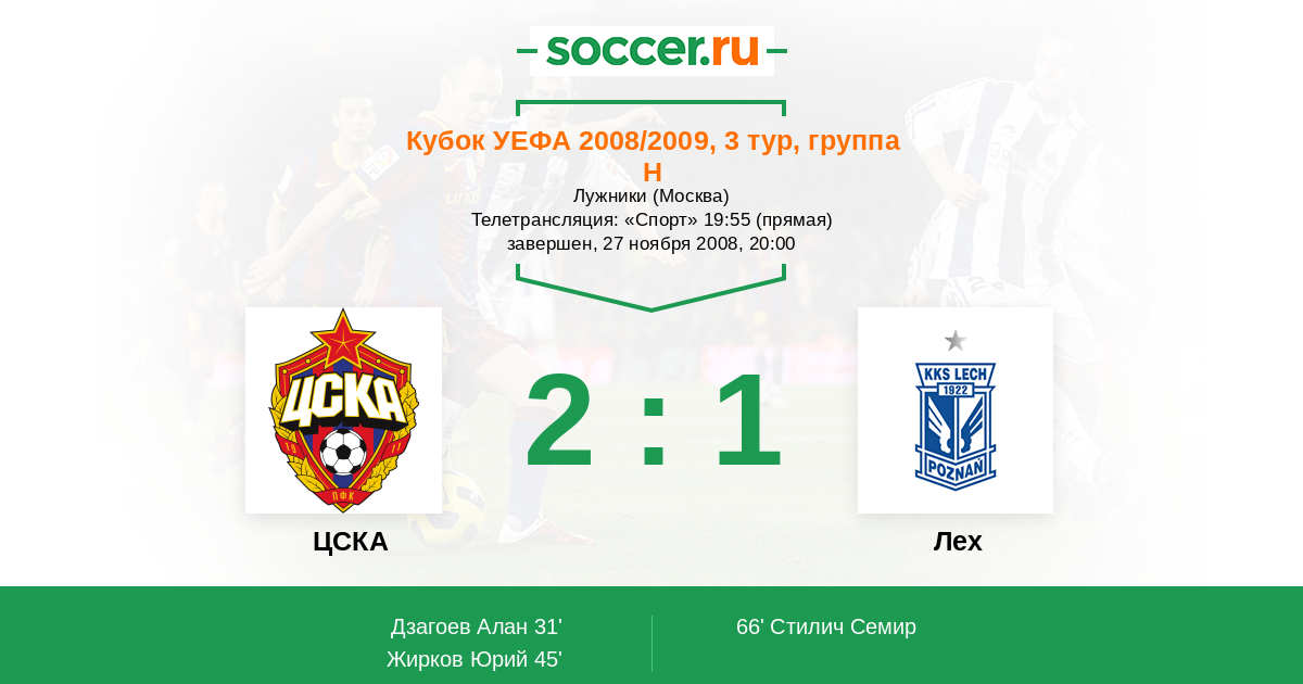 Протокол матча ЦСКА против Лех