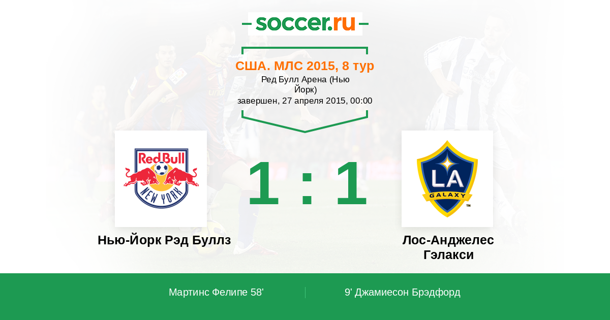 Протокол матча Нью-Йорк Рэд Буллз против Лос-Анджелес Гэлакси