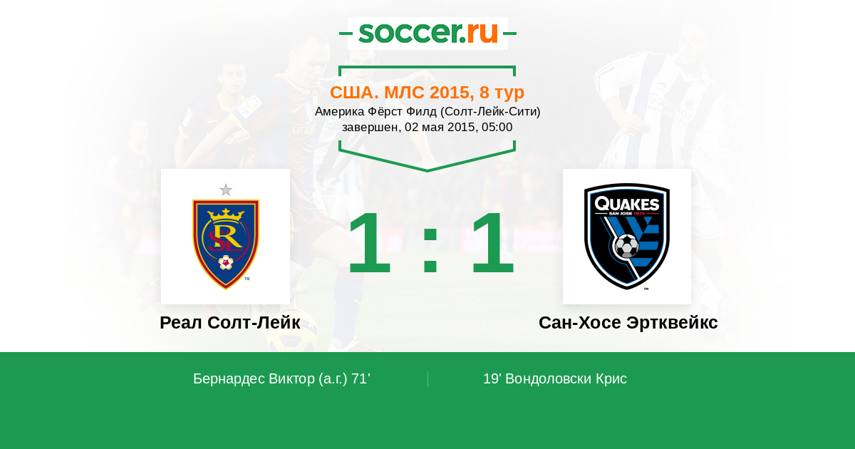 Протокол матча Реал Солт-Лейк против Сан-Хосе Эртквейкс