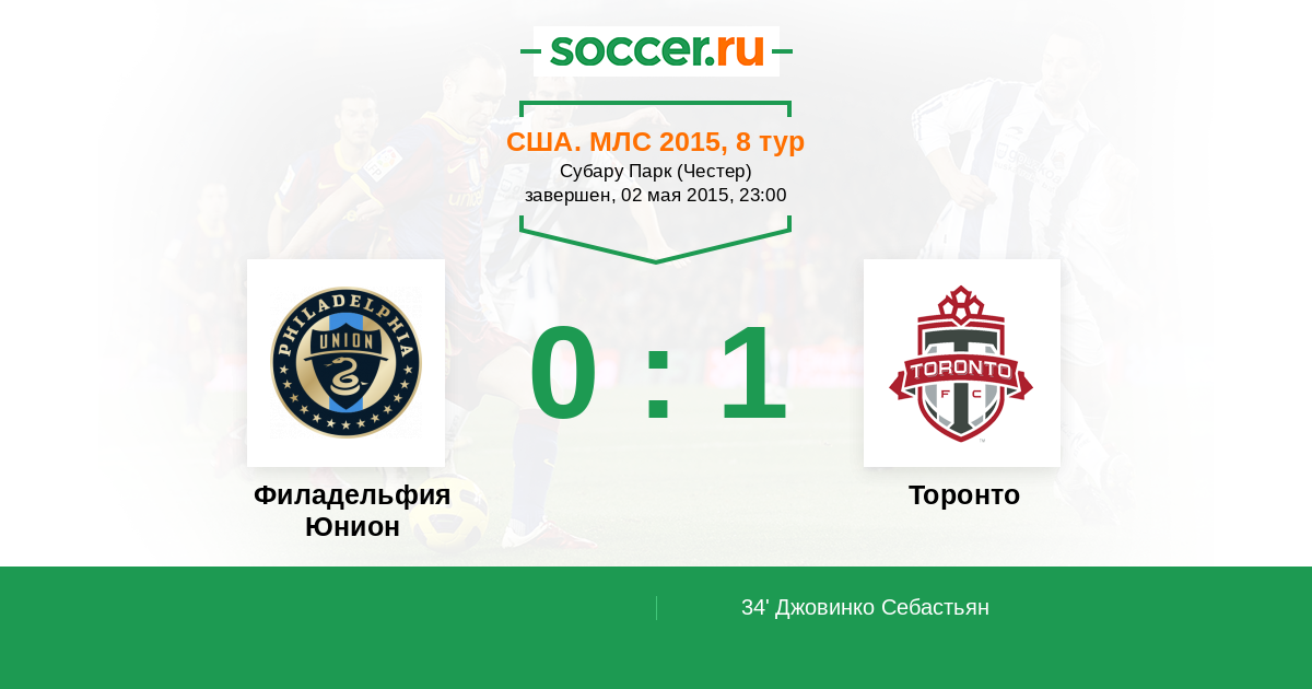 Протокол матча Филадельфия Юнион против Торонто