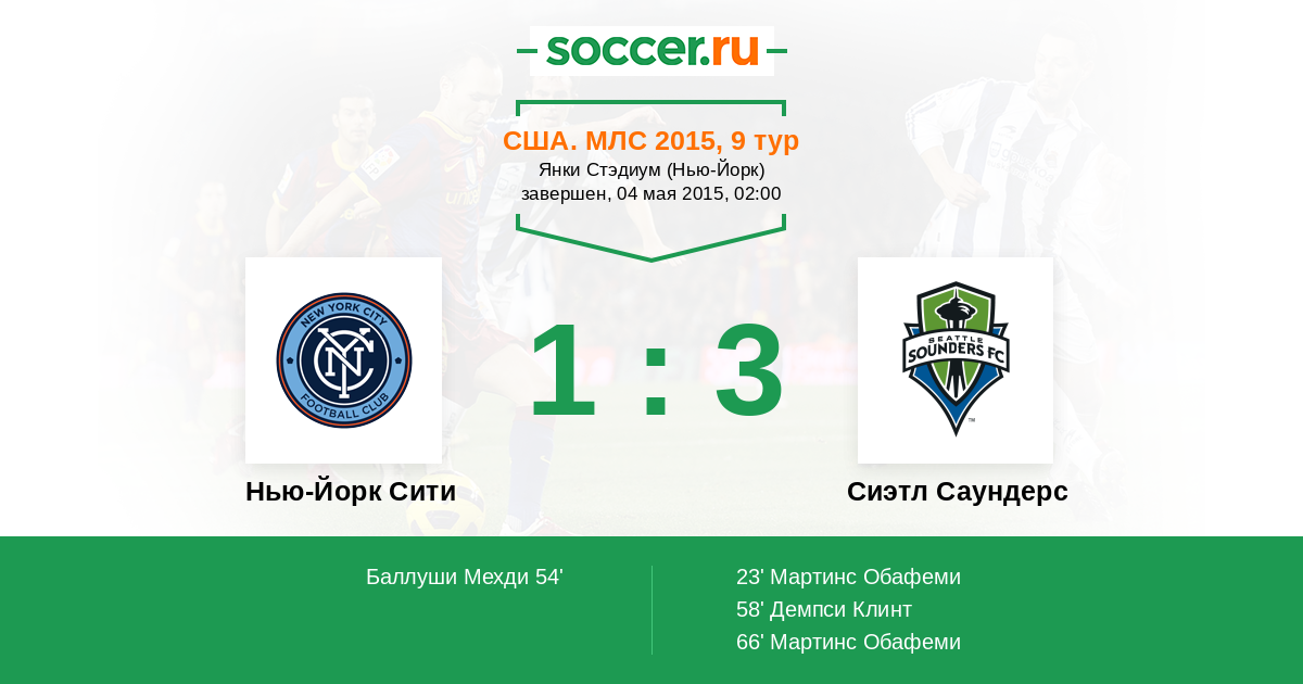 Протокол матча Нью-Йорк Сити против Сиэтл Саундерс